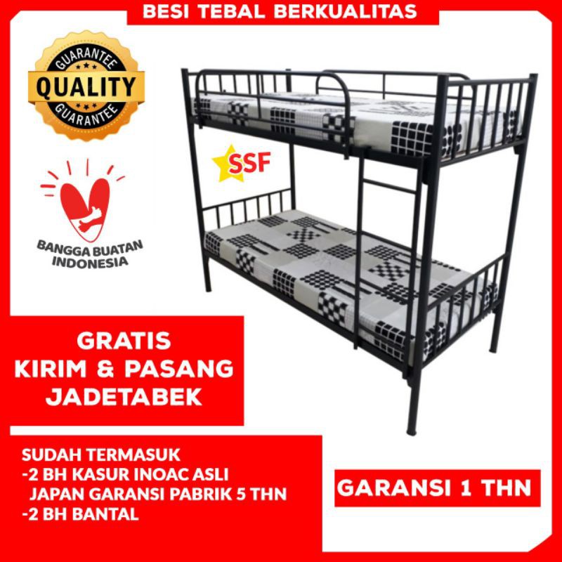 Agen Perlengkapan di Kabupaten Samosir Ranjang Susun Ranjang Tingkat Besi Uk. 90 X 200 Garansi + Busa Inoac Asli dari Suksesselalufurniture Kota Tangerang