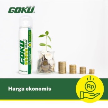 DISINFECTANT SPRAY GOKU1. Mengandung alkohol 70% dan bahan aktif lainnya yang sangat efektif untuk membasmi jamur, virus dan bakteri seperti E.Coli dan Salmonela.2. Dapat digunakan pada permukaan benda dan perabot dirumah Anda untuk mensterilkan dan kuman, virus dan bakteri.3. Mengandung bahan anti Korosi (karat) sehingga dapat melindungi benda dan perabot logam di sekeliling Anda.4. Dapat membunuh bakteri yang menyebabkan bau tidak sedap pada ruangan Anda.5. Menggunakan parfum Lavender yang menyegarkan sehingga dapat menghilangkan bau tidak sedap diruangan kantor maupun dirumah.Komposisi GOKU:- Alkohol 70%- N-Propanol 4%- Chlorhexidine Digluconate 0,5%DISINFECTANT SPRAY GOKU DAPAT DIGUNAKAN PADA:- Ruangan- Peralatan rumah tangga- Tempat tidur- Mainan anak- Bagian dalam mobil- PakaianTersedia dalam 2 ukuran 50ml & 2