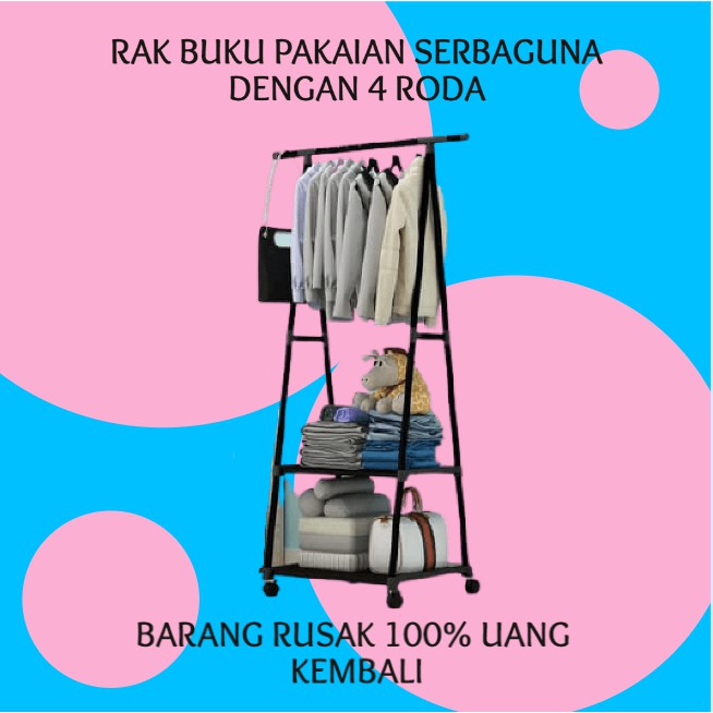 barang sesuai gambar dan deskripsi !!!Ready coffepinkhitamputihMH X17 Triangle Stand hanger rak buku pakaian serbaguna dengan 4 rodaModel standing, bisa untuk gantungan pakaian, tas, jas, topi, dasi dan aksesoris atau apa aja yang bisa digantung. Model standing lebih modern dan irit tempat, bisa dipakai di rumah atau di kantor.Dari bahan besi anti karat dengan polesan warna anti luntur, bisa dipakai untuk jangka waktu lama, kuat dan kokoh. Pemasangan sangat mudah.spesifikasiSize : 56 * 45 * 160 cm bahan: pipa besi bulat + kain non