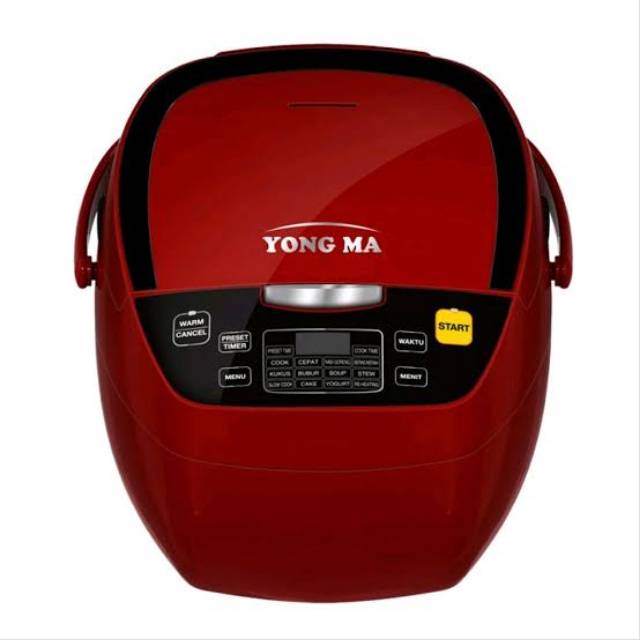 Yong Ma YMC-801R Digital Rice Cooker 2L Selamat BelanjaGaransi Resmi Yongma IndonesiaSPECIFICATIONWarna : Merah, Hitam, PutihKapasitas : 2.0 L / 11 orangInner Pot : Eco CeramicDaya Konsumsi : 400 WGaransi : Garansi Resmi Yong Ma 1 TahunDeskripsi :'' Dapat digunakan untuk memasak nasi, menghangatkan, dan mengukus'' Fungsi One Touch. Cook & Warm dengan satu tombol 'One Touch' yang mudah'' Mempunyai kapasitas 2.0 L / 11 orang'' Sistem 3D Heating. Menghangatkan lebih lama dan nasi tidak mudah basi dengan sistem warm 3D Heating dari top / body / bottom'' Bisa Masak Nasi Goreng'' Inner Pot Eco Ceramic. Menerapkan innerpot Eco Ceramic yang lebih bagus untuk kesehatan'' Memiliki 12 macam menu memasak yaitu, Nasi Goreng, Slow Cook, Re-heating, Yogurt, Cake, Soup, Stew, Bubur, Kukus, Beras merah, Cepat dan Cook'' Fungsi Alarm. Memberitahukan dengan bunyi alarm ketika proses memasak sudah selesai'' Terdapat Pegangan pada Innerpot'' Fungsi Preset. Lebih mudah dengan menggunakan fungsi preset waktu memasak (24 jam)'' Penutup Innerpot bisa dilepaskan. Setelah memasak, penutup innerpot mudah dilepaskan untuk dicuci dan dipasang kembali'' Aksesoris: Measuring cup, Soup scoop, Rice scoop, Steam pot, Kartu garansi, Resep Ma