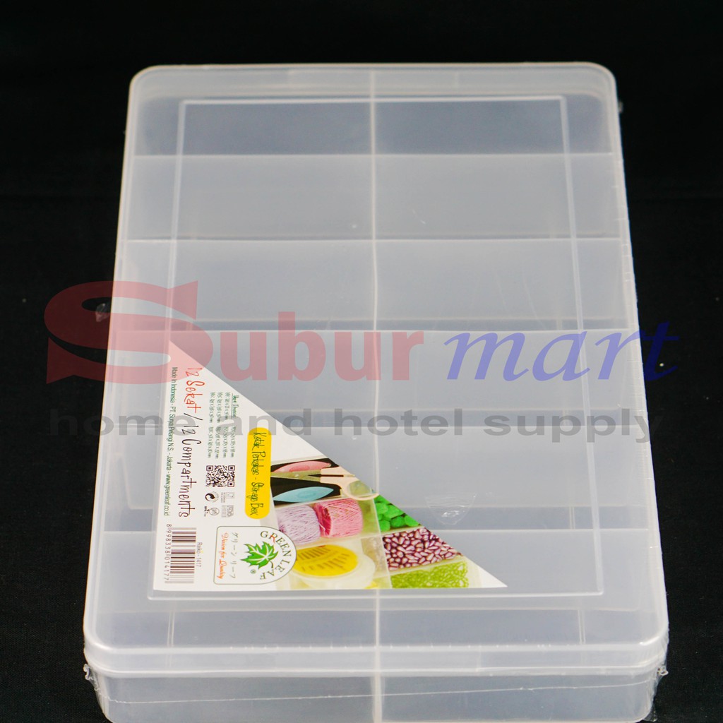 Terbuat Dari Bahan Plastik Kuat Dan Tebal Untuk Menyimpan Aksesoris, Spare Part, Kancing, Jarum dll Multifungsi Dan Mudah Dibersihkan.SPESIFIKASI :Panjang : 31 cmLebar : 20 cmTinggi : 5 cmMaterial : PlastikWarna : TransparanNB : - Untuk menghindari kesalahan dalam pengiriman, mohon untuk menanyakan terlebih dahulu ketersediaan warna dan stock- Jika pilihan warna kosong, maka kami akan kirim sesuai dengan stock yan