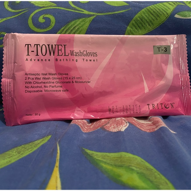 sarung tangan handuk seperti washlap yang mengandung anti bakteri Chlorhexidine Gluconate dan pelembap.dijamin