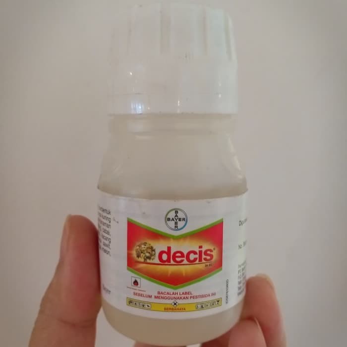 Jual Decis 25ec 50mlDetail produk dari Insektisida DECIS 25 EC, isi 50 mlInsektisida berkualitasMelindungi tanamanharga terjangkau--------------------------------------------Insektisida DECIS 25 EC, isi 50 ml.Isi kemasan = 50 ml.Bahan aktif: Deltametrin 25 g/lberbentuk cairan.Produksi: Bayer CroPScience---------------------------------------------Insektisida DECIS 25 EC merupakan racun kontak dan lambung berbentuk pekatanyang dapat diemulsikan, berwarna kuning jernih. DECIS 25 EC berfungsi untukmengendalikan hama pada tamanan anggrek, apel, bawang merah, belimbing, cabai,jagung, jeruk, jarak, kacang panjang, kacang hijau, kakao, kapas, kedelai,kelapa sawit, kentang kubis ketimun, lada, manga, melon, semangka, teh,tembakau, dan tomat.Decis adalah insektisida non sistemik, yang bekerja pada serangga dengan carakontak dan pencernaan. Decis menguasai spektrum besar dari serangga hama yangberbeda seperti Lepidoptera, Homoptera, dan Coleoptera. Decis juga aktif untukbeberapa serangga hama dari kelas lain seperti Hemiptera (hama), Orthoptera(belalang), Diptera (lalat) dan Thysanoptera (thr