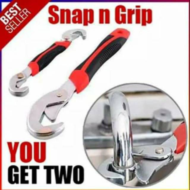 KEMASAN DAN ALAT KUNCI TERTULIS SNAP N GRIP-KUALITAS No 1Grip n grip adalah sistem yang inovatif, yang terdiri dari dua kunci pas universal. Dengan dua kunci pas ini Anda dapat melonggarkan atau mengencangkan semua jenis mur dan baut, terlepas dari ukuran dan bentuknya, seperti kunci pas beradaptasi sendiri. Solusi untuk semua masalah Anda dengan keran, katup, pipa, garis, radiator, boiler, roda, dllSpesifikasi :2 kunci pas universal untuk semua mur dan bautEfisien, praktis dan mudah digunakanSeketika mengurus semua pekerjaantersedia warna : merah seperto di