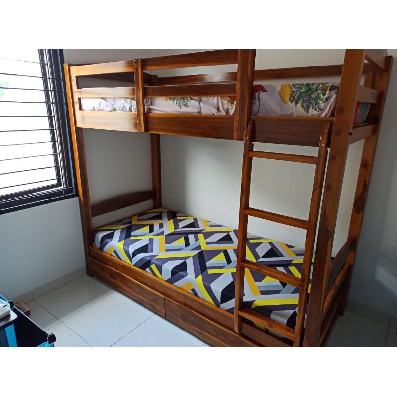 Name: Ranjang Susun Tingkat Jati Minimalis Dengan 2 Laci Ukuran 120x200 Include Kasur Busa