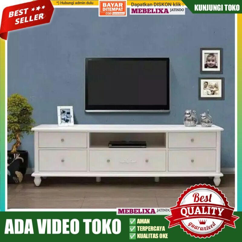 Sale Perlengkapan di Kabupaten Langkat Mebelixa 024 Bufet Meja Tv Minimalis Kayu Mahoni Buffet Tv Cat Duco Putih Penyimpanan Multifungsi dari Tidak Ada Merek Kota Jakarta Barat